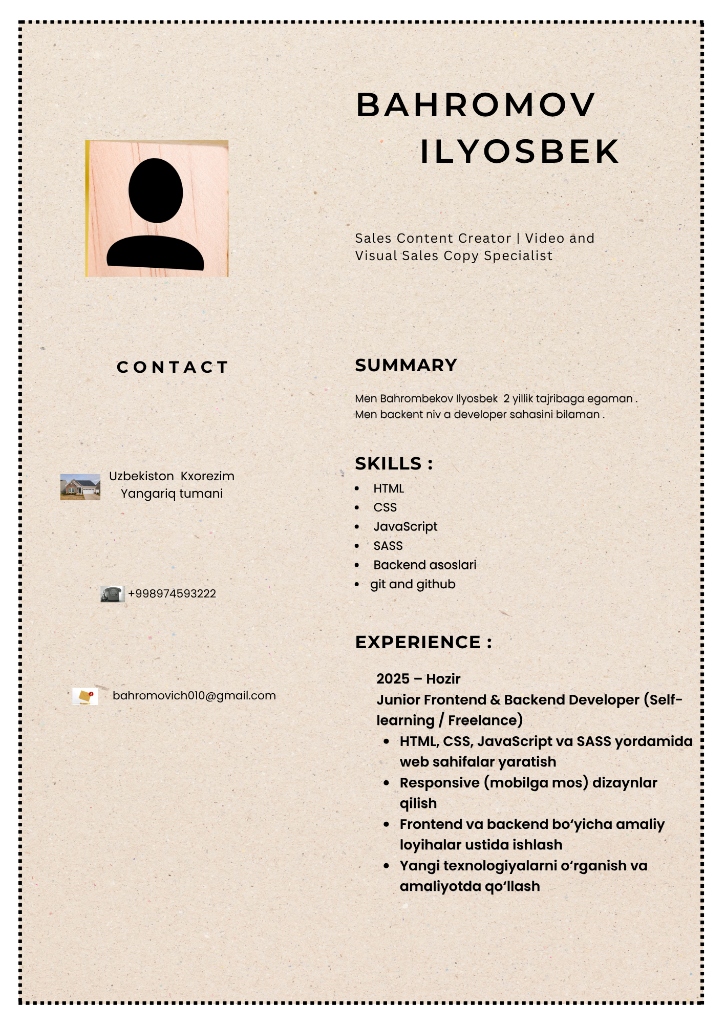 Hello! I'm Ilyosbek, a developer who enjoys creating things that live on the internet. My interest in web development started with tweaking custom HTML/CSS and evolved into building robust backend architectures.